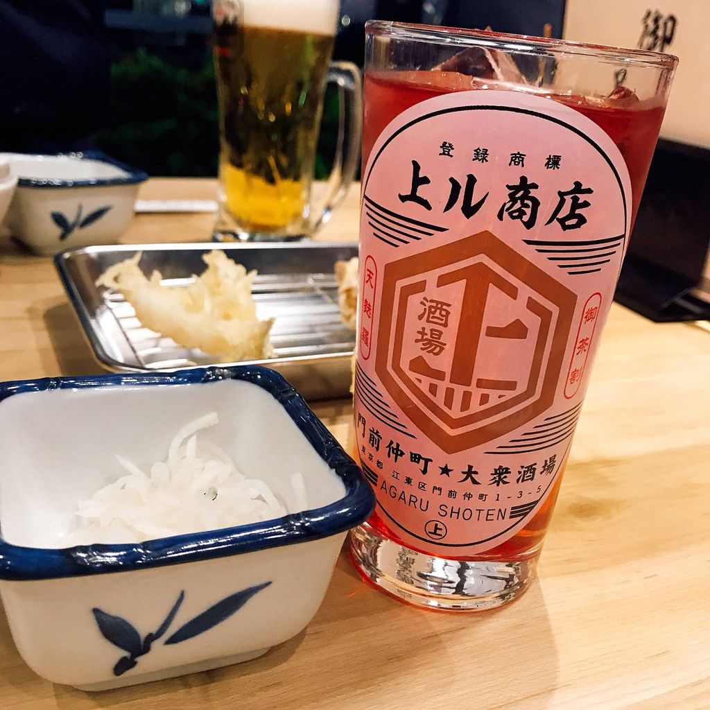 ローズヒップピーチティー割りと牛もつ白ころを注文